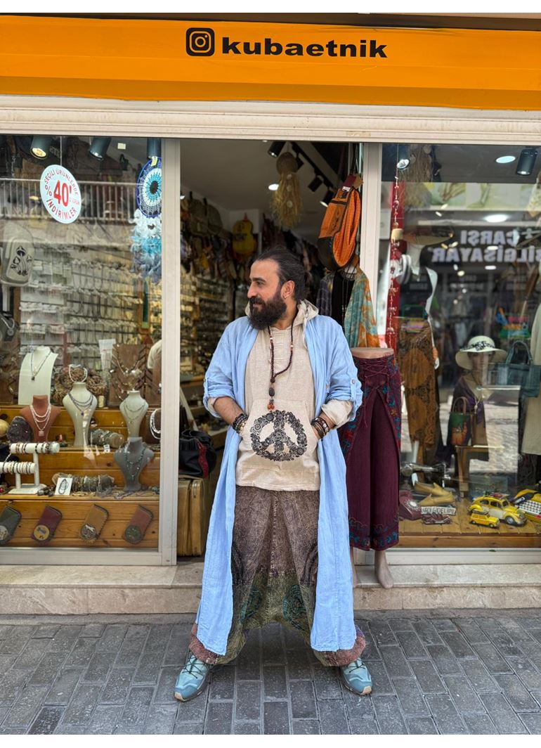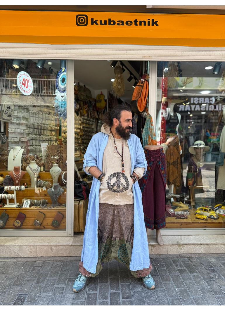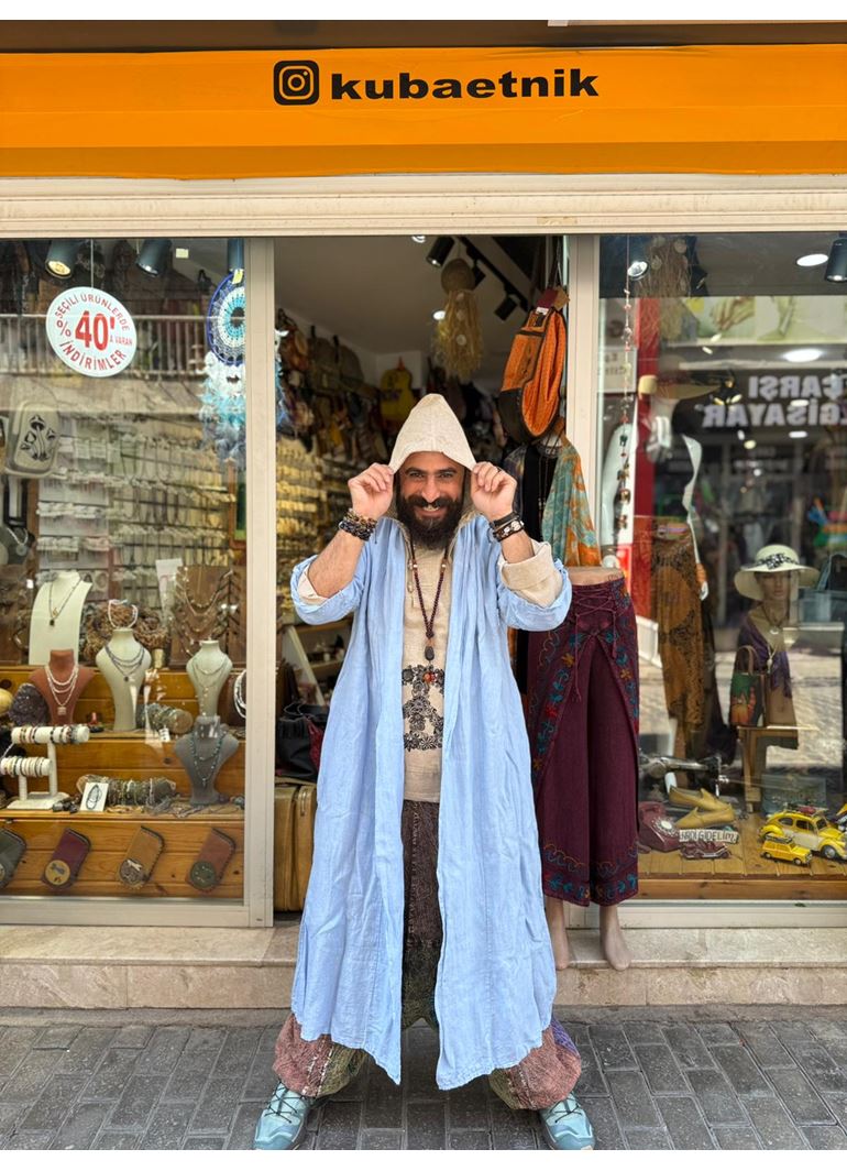 İtalyan Keten Kaftan Mavi