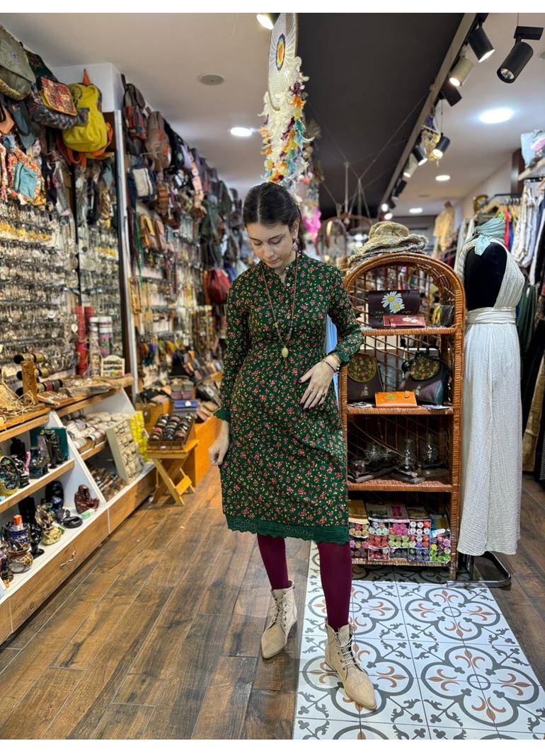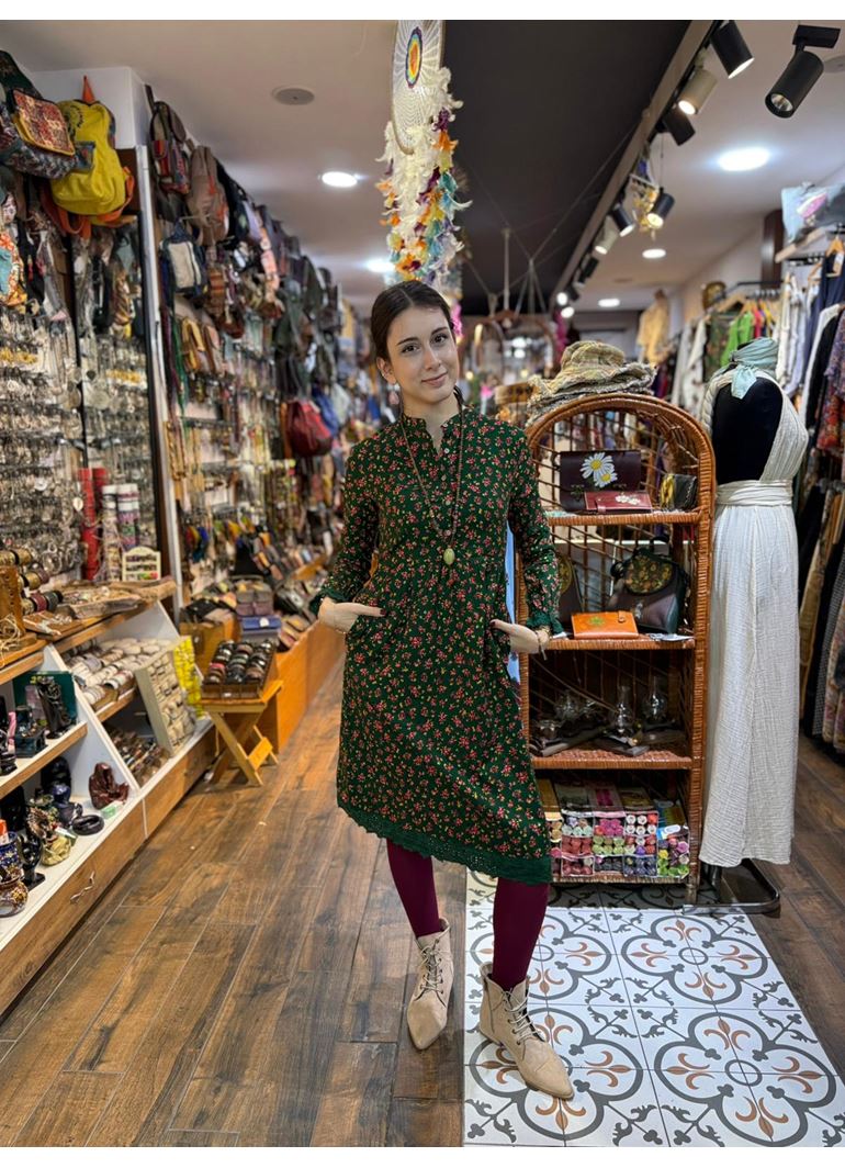 Desen: Yeşil zemin üzerine çiçek desenli.