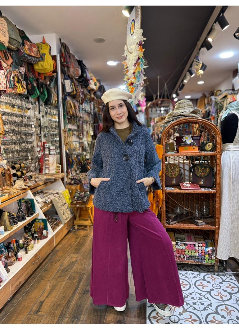Palazzo Yüksek Bel Bol Kesim Hardal Desenli Pantolon