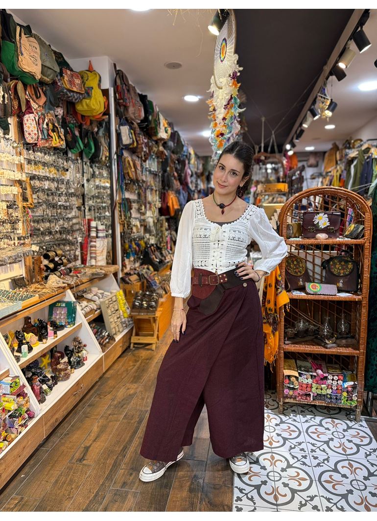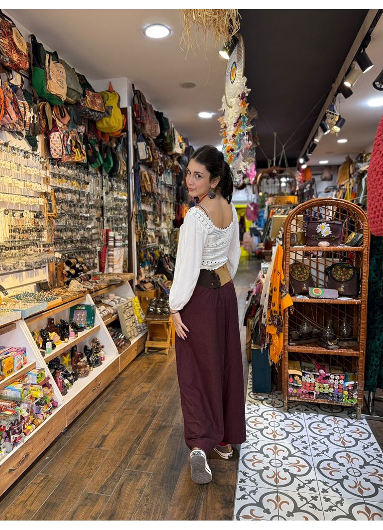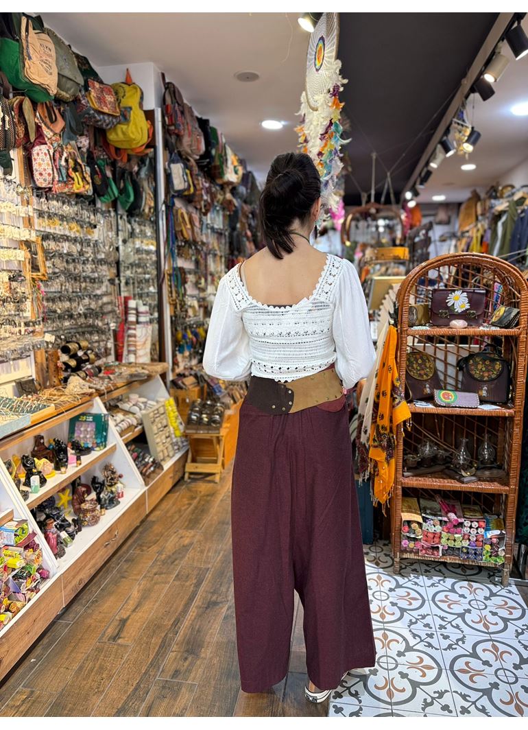 Anvelop Asimetrik Kesim Düğme Detaylı Kırmızı Kadın Bohem Pantolon