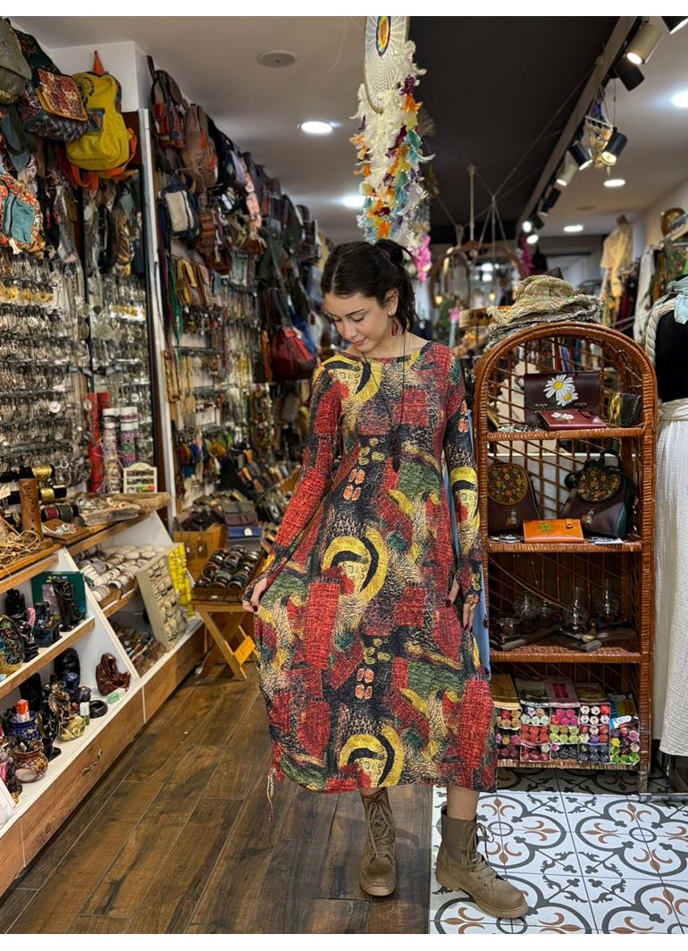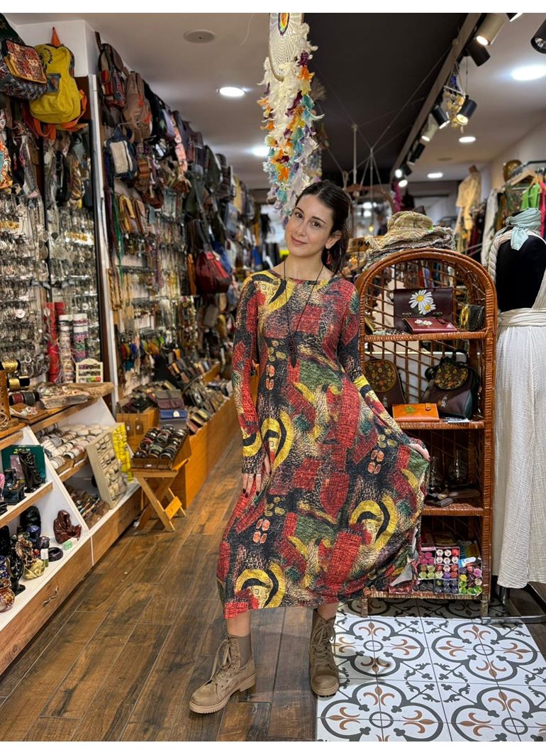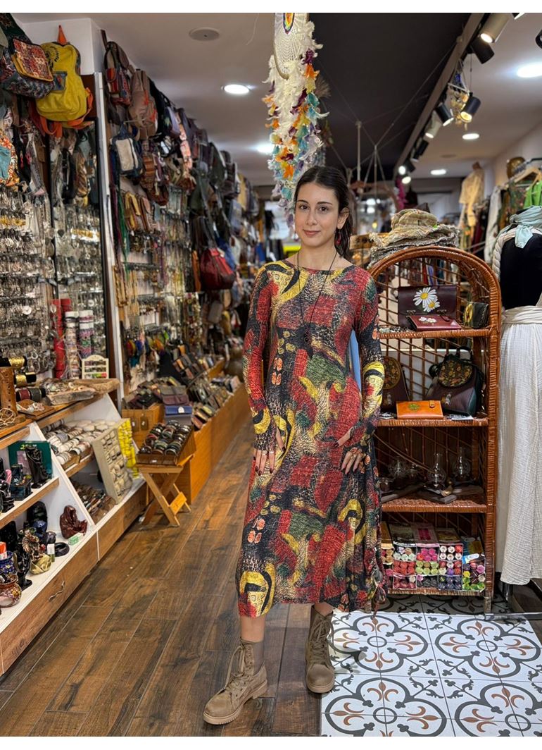 Kayık Yaka, Uzun Kol, Kışlık, Desenli Uzun Elbise