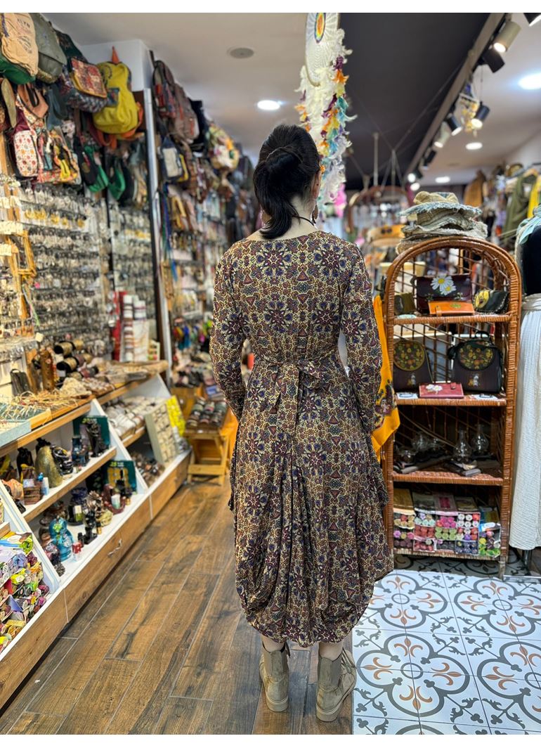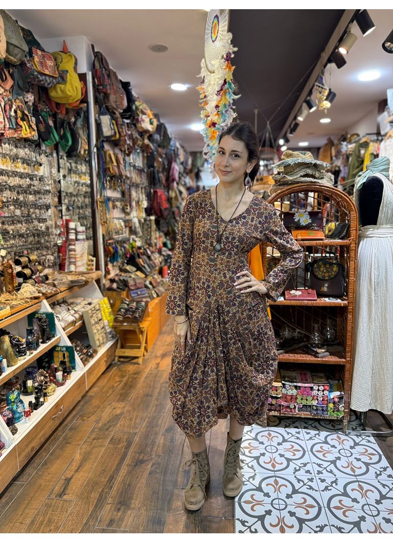 Şık, V Yaka, Balon Etek Detaylı, Karat Desenli Elbise