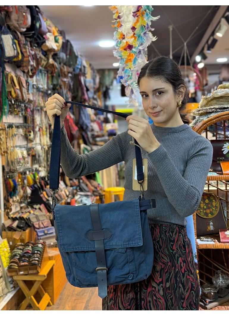 Old Cotton Postacı Çantası Mavi