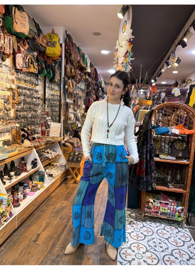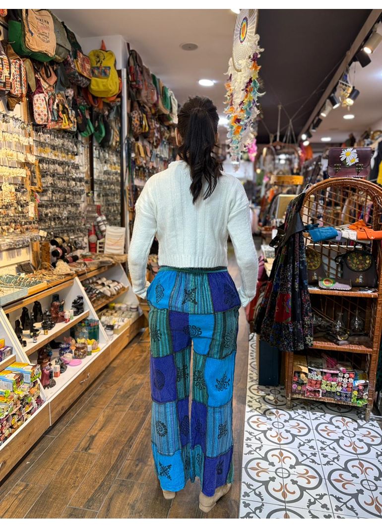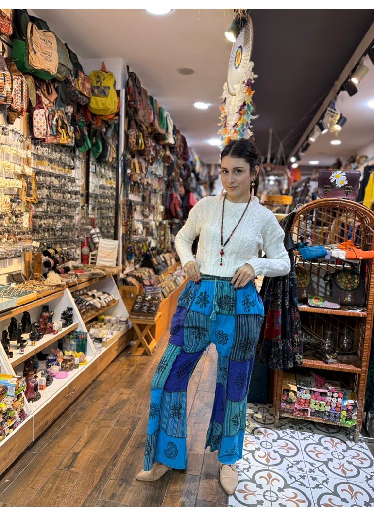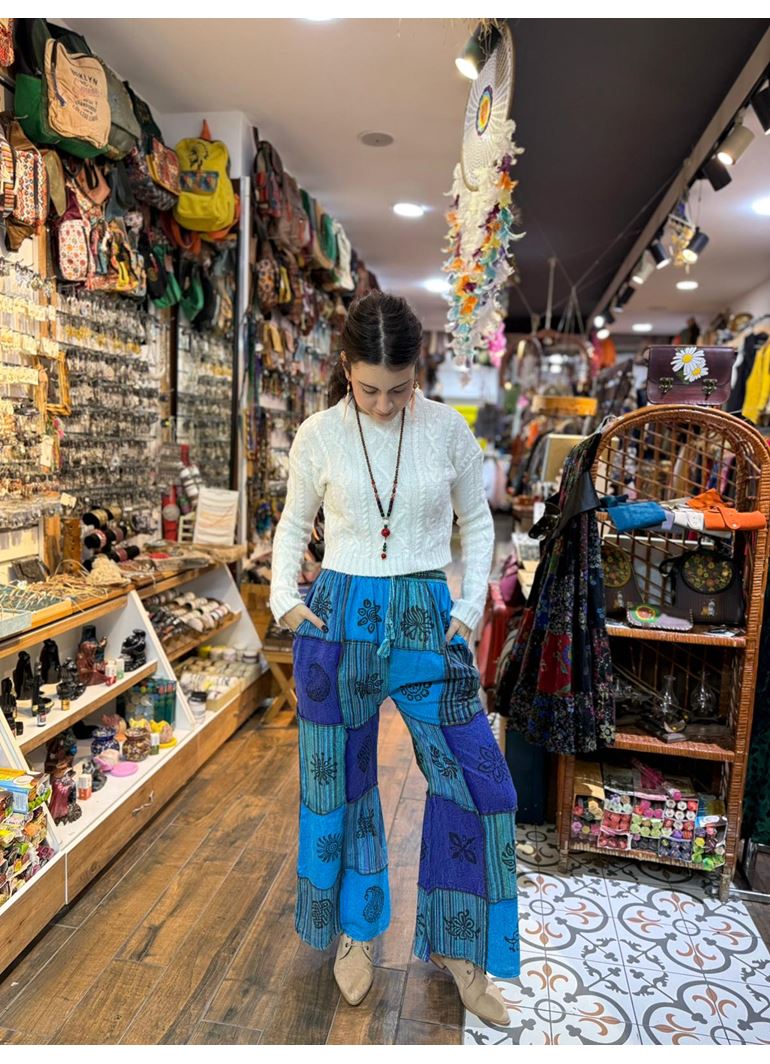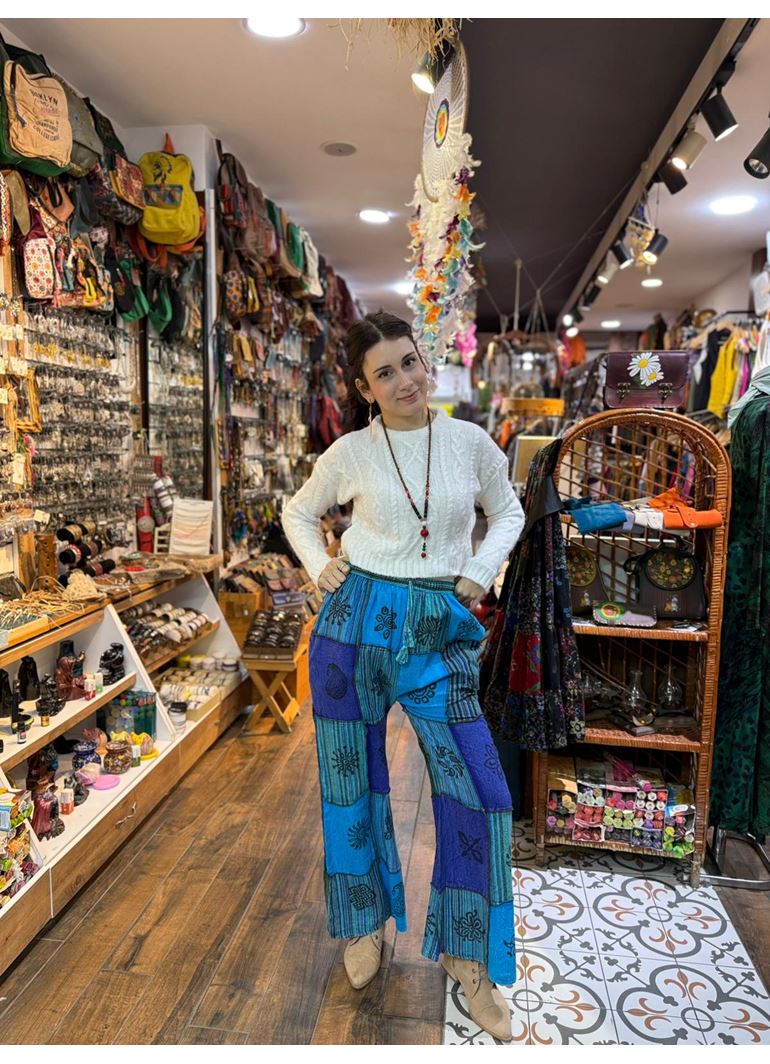 Nepal Etnik Patchwork Pantolon Mavi