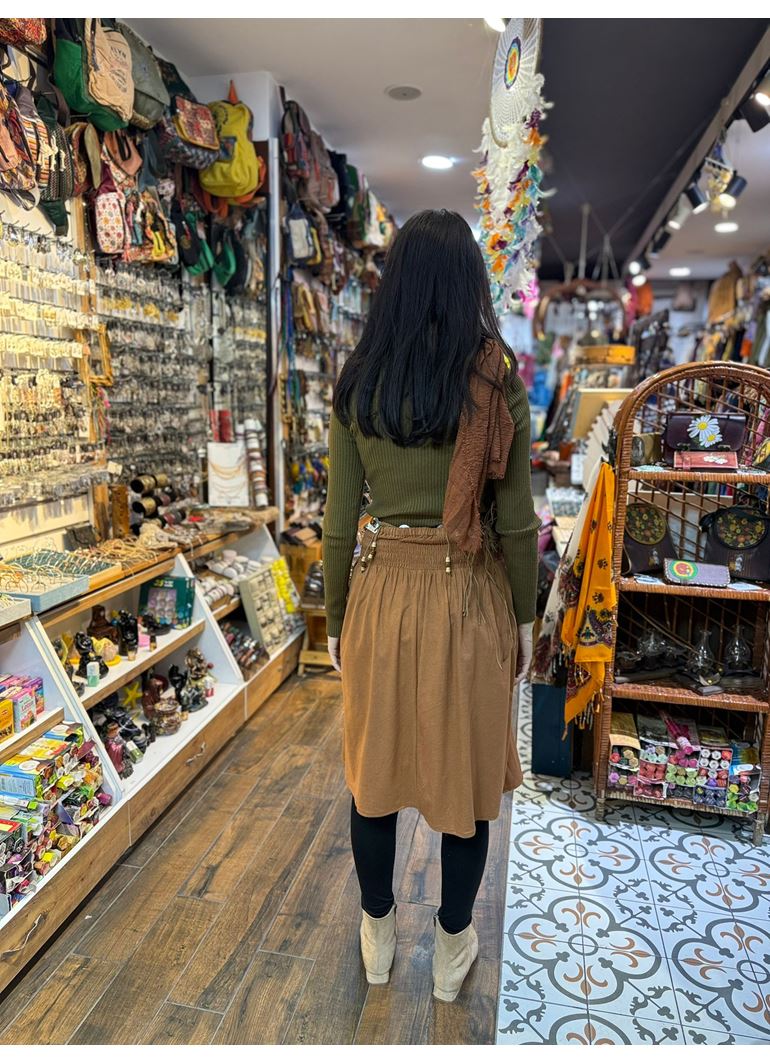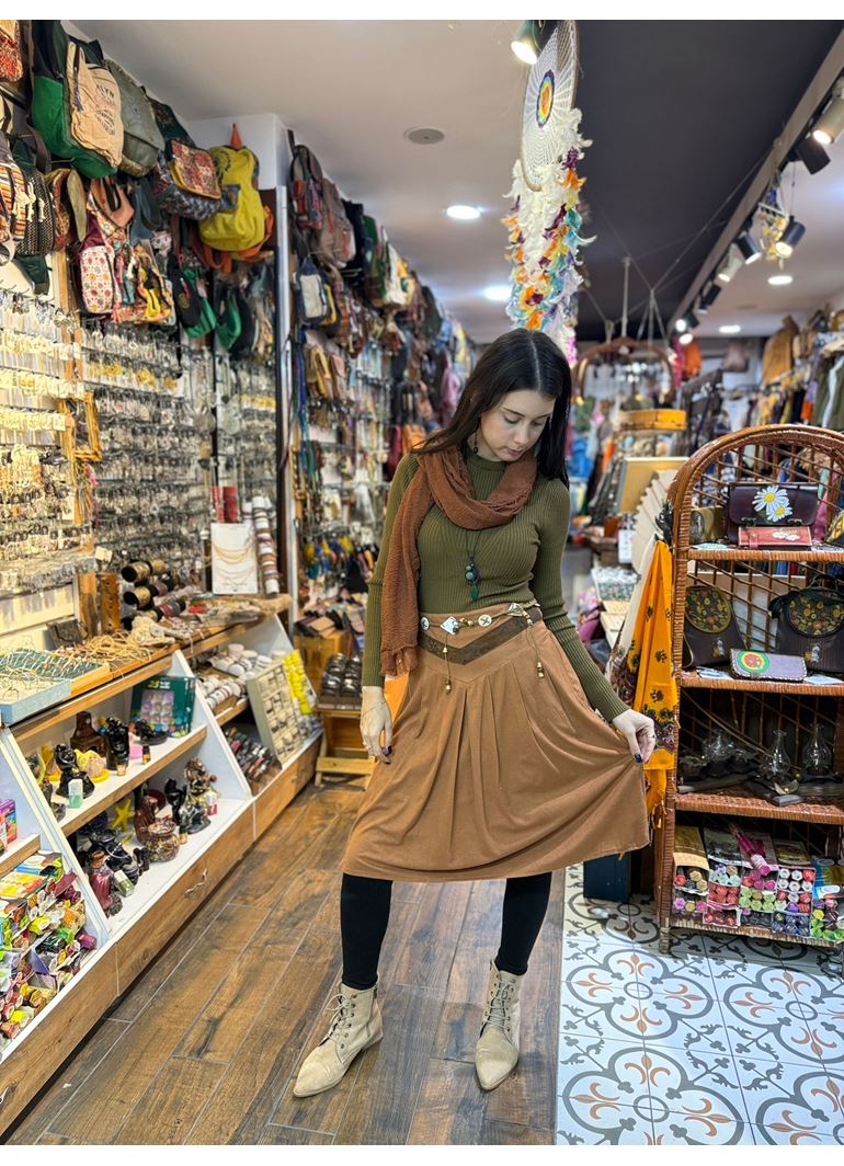 Taba Kloş Suet Midi Etek