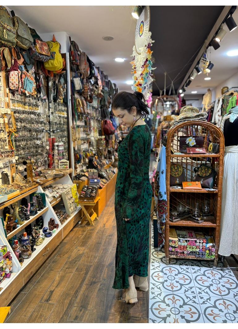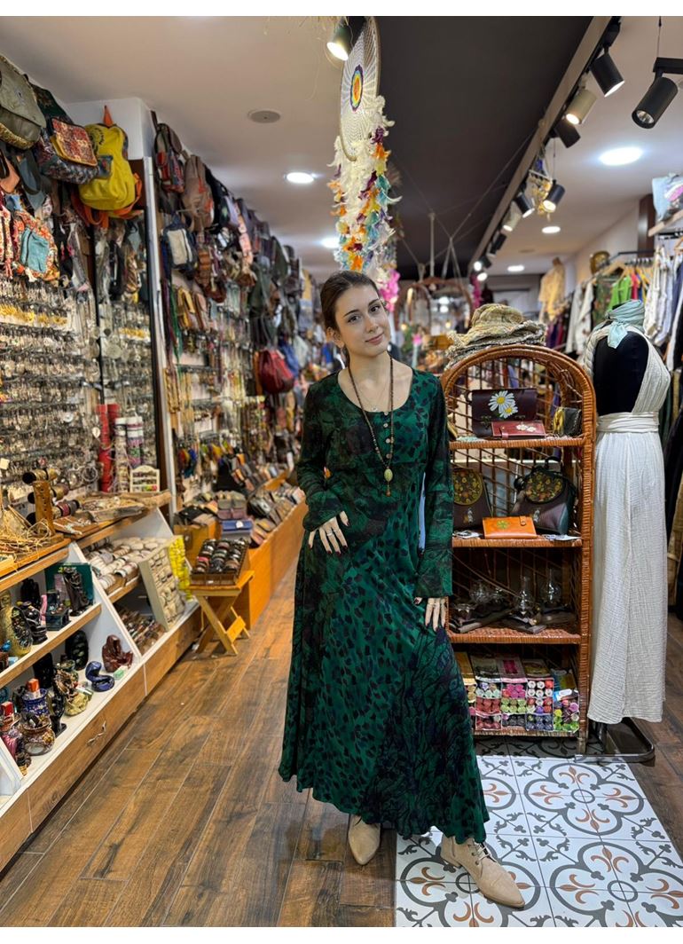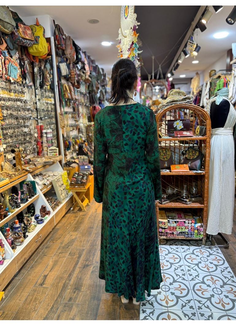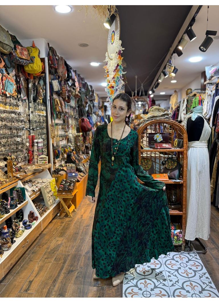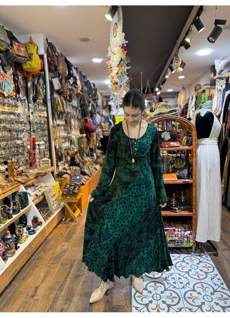 Yeşil Desenli Uzun Kollu Kışlık Patch Elbise