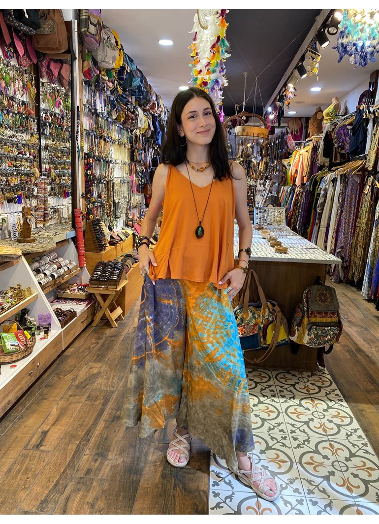 Tasarım batik desen %100 viskon pamuk turuncu pantolon. Standart bedendir.