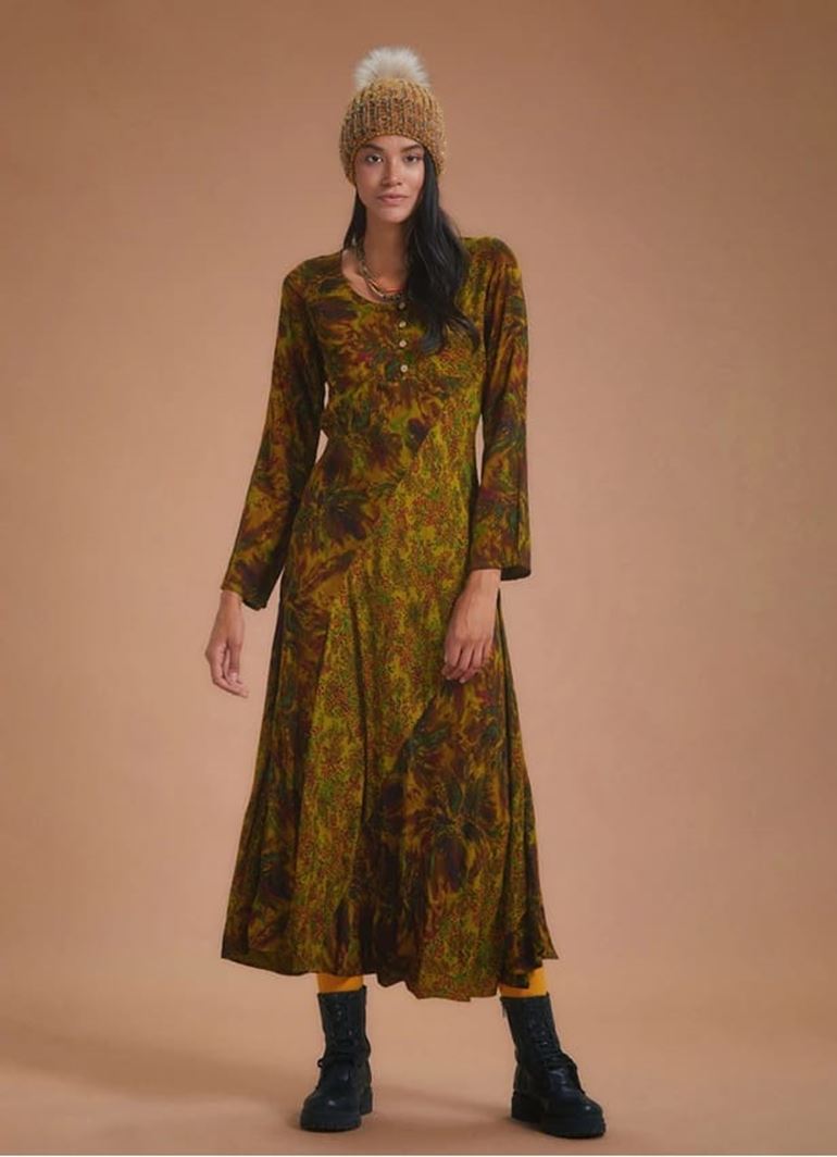 Yuvarlak Yaka, Düğme Detaylı, Uzun Kollu, Maxi Boy, Kışlık, Patch Elbise