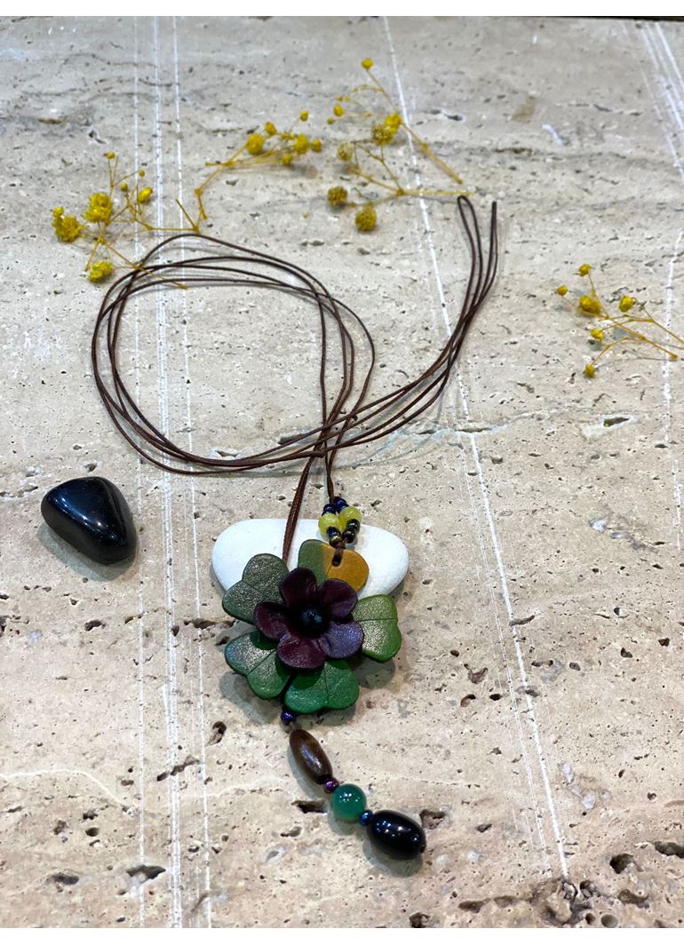El İşi Özel Tasarım Deri Çiçekli Kolye