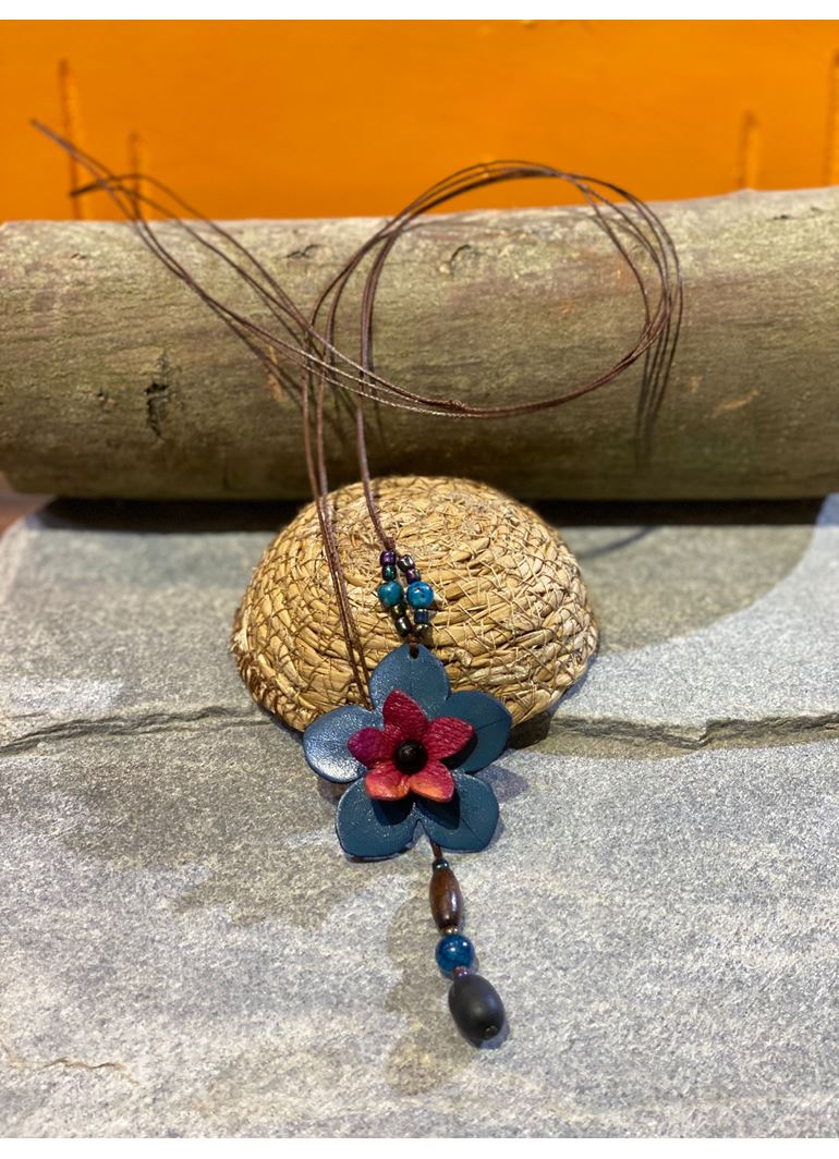 El İşi Özel Tasarım Deri Çiçekli Kolye