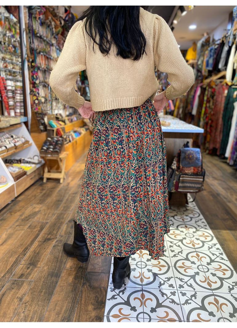 Biye Detaylı Bel Kemeri, Asimetrik Kesim Etek Ucu, Beli Lastikli, Midi Etek