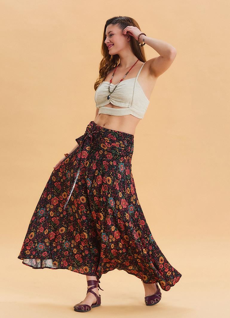 Gipe Belden Bağlamalı Çiçekli Otantik Etek