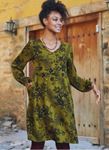 Haki Gül Desenli Kısa Uzun Kollu Robadan Elbise