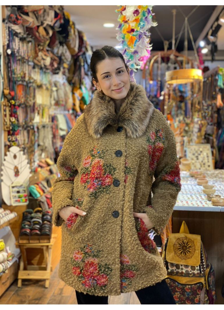 Palazzo Yüksek Bel Bol Kesim Hardal Desenli Pantolon