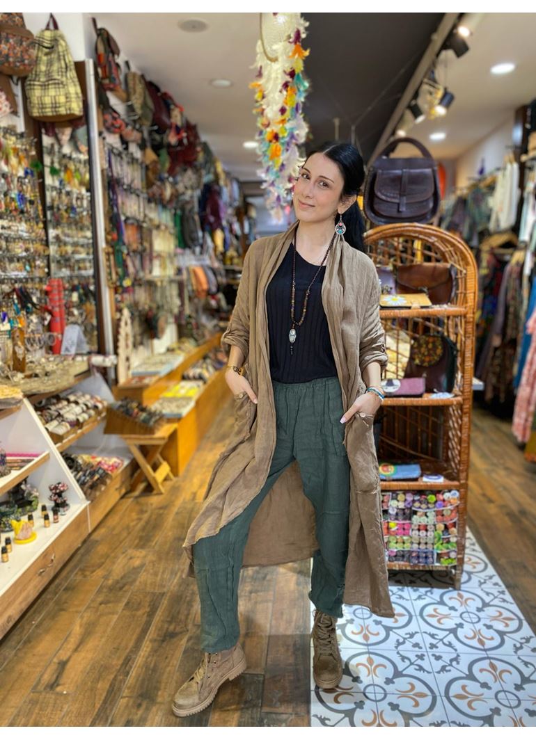 İtalyan Keten Kaftan Kahverengi