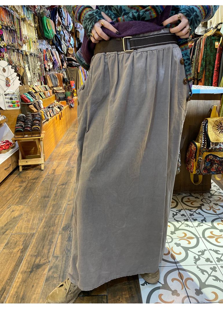 Kadife Kemerli Uzun Etek Gri