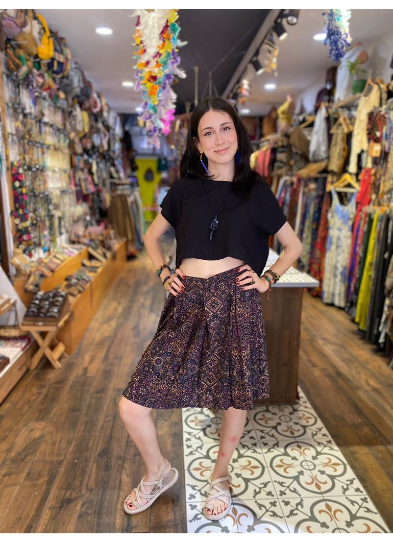 Geniş Pile Detaylı, Arka Bel Lastikli, Cepli, Desenli, Kısa Yazlık Etek