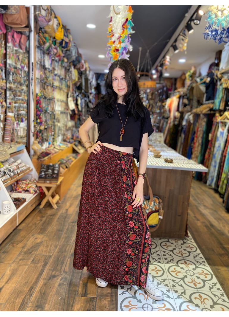 Arka Bel Gipe Lastikli, Derin Yan Yırtmaç Detaylı, Çiçekli Uzun Etek
