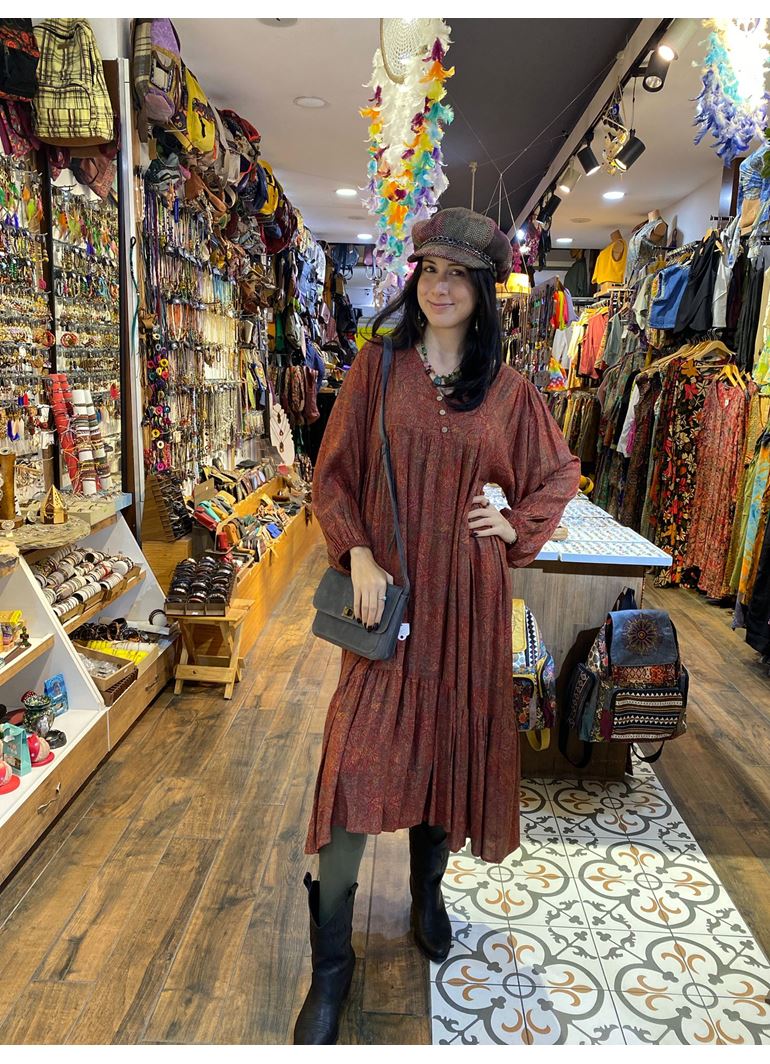 V Yaka Kol Ucu Lastikli Bohem Salaş Elbise