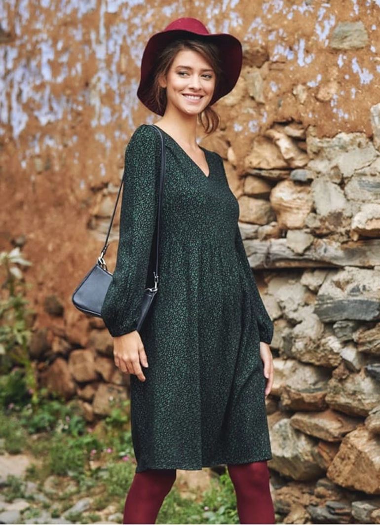 Gizli Fermuar Kapama, Kol Ucu Lastikli, Büzgülü Roba Detaylı, Uzun Kollu , V Yaka Elbise